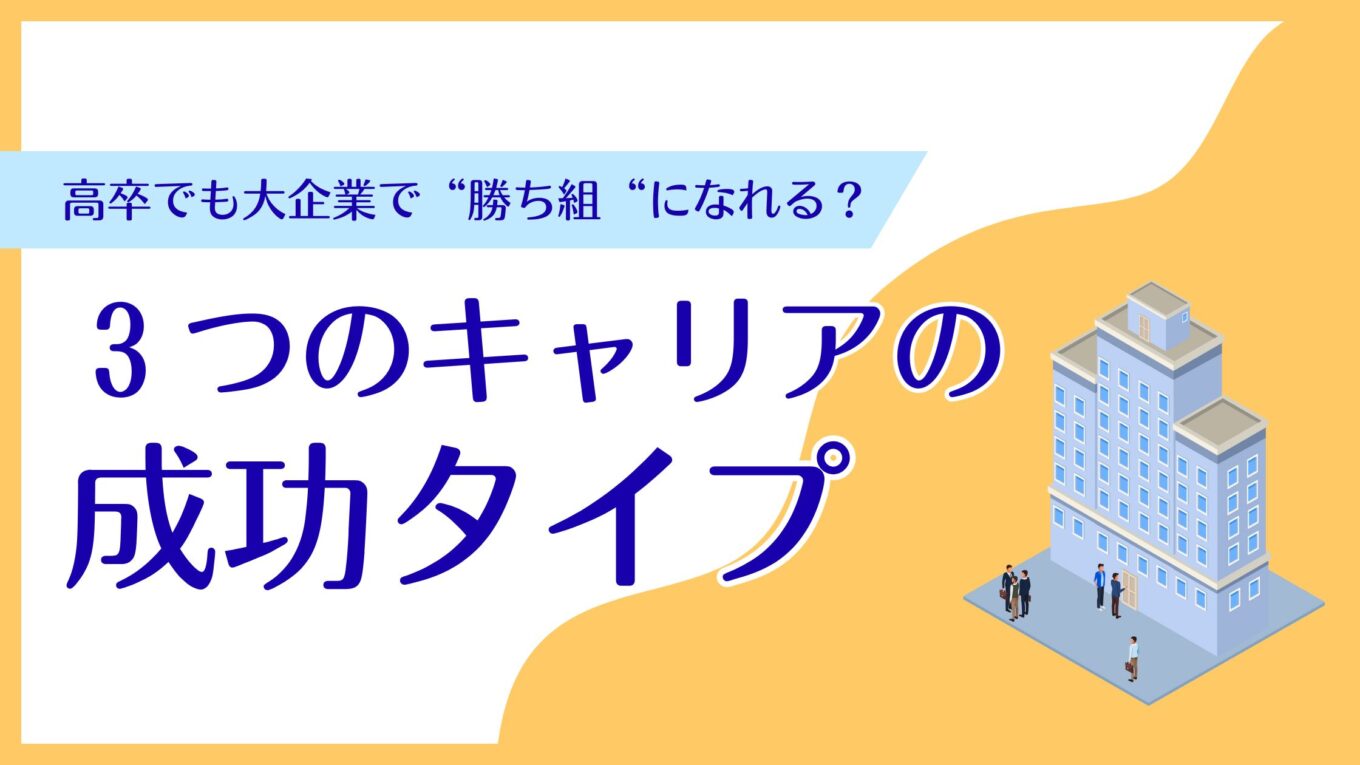 新着記事NEWS 高卒で営業に挑戦するなら?おすすめ業界と選び方を解説。 2025.12.13 転職ノウハウ 高卒社会人の自己分析記録|強みが見えなかった理由 2025.12.07 体験談 高卒からのキャリア不安…コーチング体験談 2025.09.28 体験談 高卒社会人が転職エージェントを試してみた体験談 2025.09.21 体験談 高卒でも大企業で勝ち組になれる?3つのキャリア成功タイプとは 2025.09.17 転職ノウハウ 高卒でも工場から転職できる?挑戦しやすい業界5選 2025.09.15 転職ノウハウ カテゴリCATEGORY 体験談 転職ノウハウ ブログ設立の背景 準備中 動画コンテンツVIDEO CONTENT 高卒キャリアSTORY 「高卒社会人のキャリアを“見える化”する」をコンセプトに、現場出身で活躍する20〜30代の方々のキャリアストーリーを発信しています。 動画を見てみる